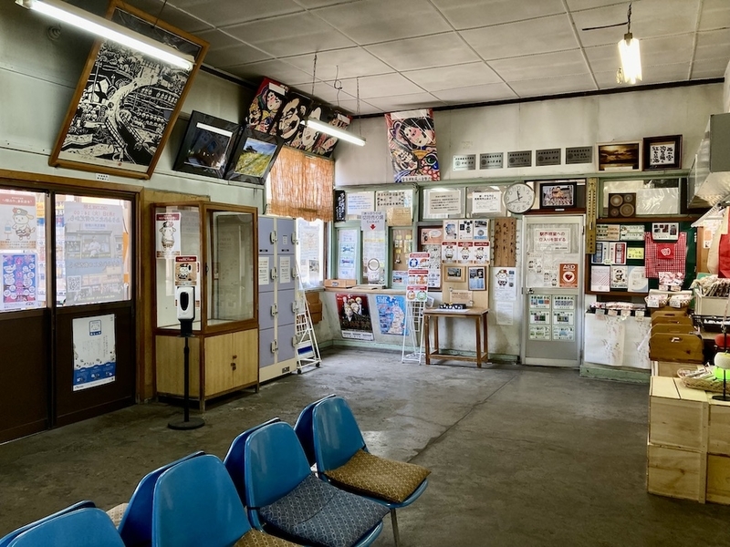 駅前には広めのバスの待合所がありました。うどん屋さんやおやき屋さんも入っていてとてもいい感じ!!