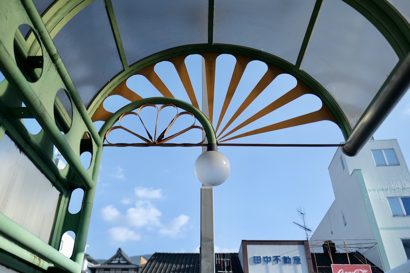 愛南町から宇和島駅に到着!バス停の柑橘デザイン可愛い〜(行きの時は気づかなかった)。