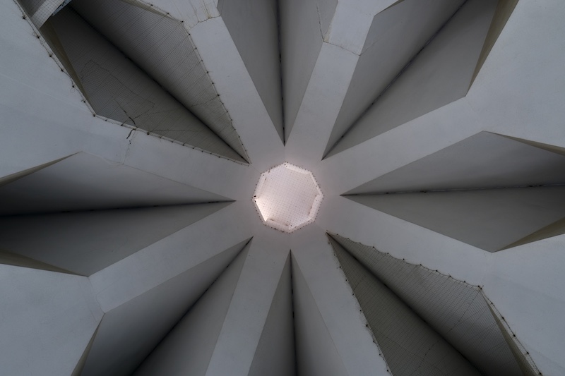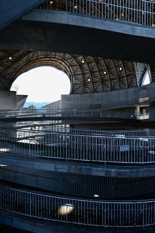 未来を夢みて作ったような雰囲気。レトロフューチャーというのかな?無機質な素材なのにどこか有機的で生命を感じさせるフォルム。建築家の主張が強すぎる個性まるだしの建物。使い勝手はとても悪そう・・・。