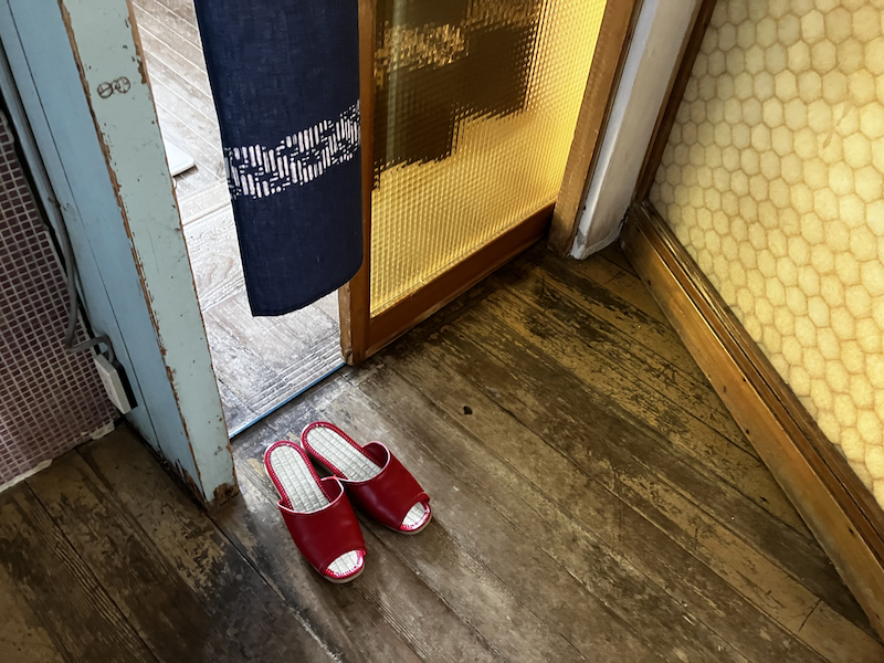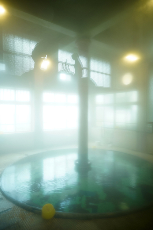 キューピー人形は大正時代に日本でも作られるようになって大流行したそうです。こちらの棚もきっと大正〜昭和初期頃に作られたものなのでしょうね。ちなみにお客さんがいない時にお隣の男湯をちらっとのぞいてみると・・・