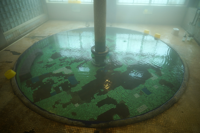 なんて素晴らしき空間なのだ・・・。まんまるの浴槽の床のボロボロのタイル模様がまるで地球に見えて宇宙を感じてしまったよ・・・!!