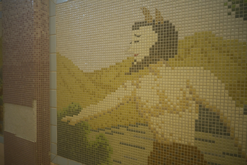 そしてなんといっても印象的なのは、思わずクスッと笑ってしまうようなほんわかした壁のモザイク画。