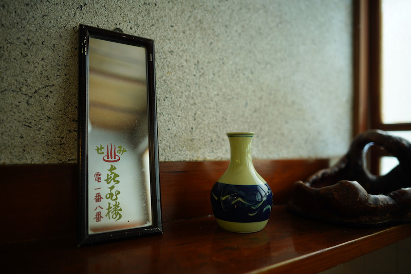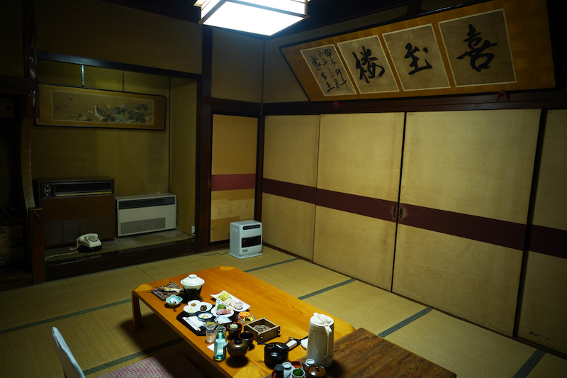 嬉しいことに個室!時代を感じさせる「喜至楼」と書かれた立派な書が目の前に掲げられています。