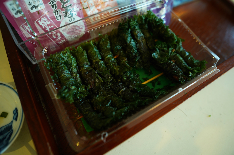 ごはん等はセルフで「しそ巻き」も取り放題。(だけどたくさんは食べれないことをわたしは去年の岩手旅で学んだのだ)